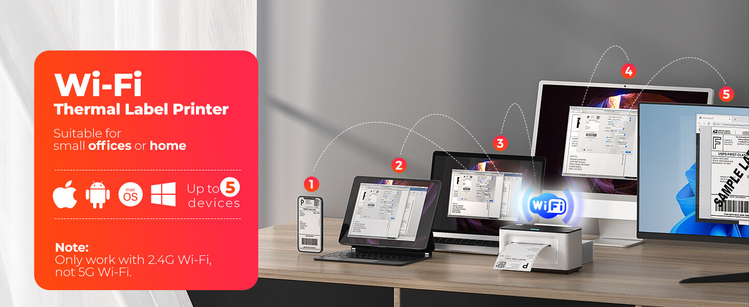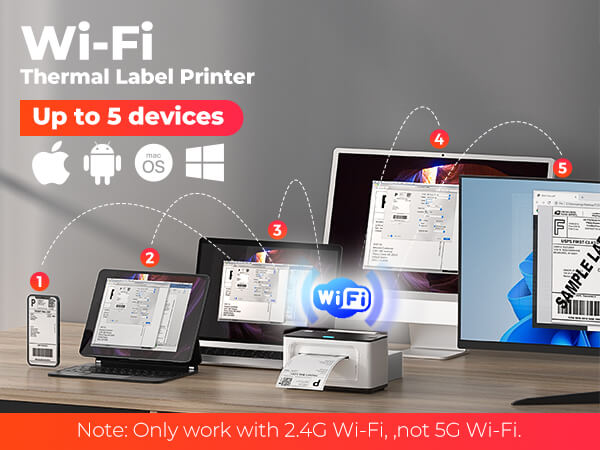 - Support Wi-Fi/USB connection, switch between Wired and WI-FI interface. Free up your desktop space.