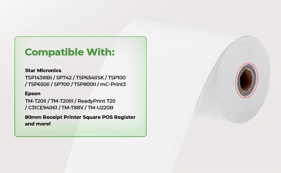 - [Wider Compability]: This thermal paper rolls works with most 3 1/8" thermal printer, is perfectly compatible with Star Micronics, Epson, MUNBYN, Rongta thermal printers, and MORE!