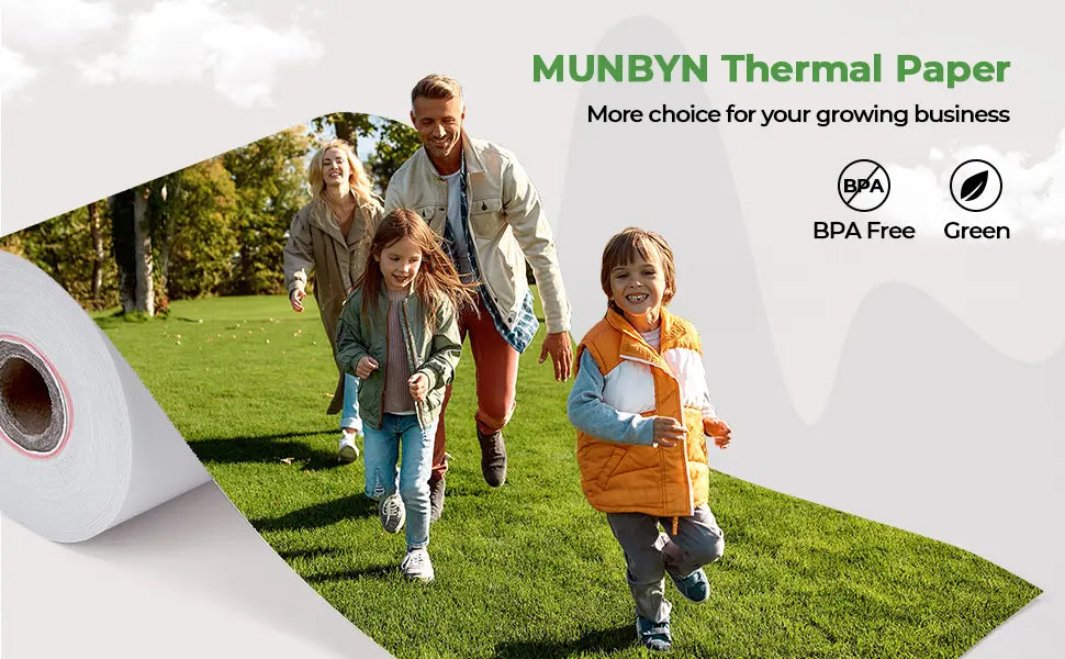 - [Environmentally Friendly]: BPA&BPS Free, BPA (Bisphenol A) is an industrial chemical. It may cause endocrine disorders and have certain effects on people's health. The MUNBYN thermal receipt rolls is suitable for physical conditions of any age.