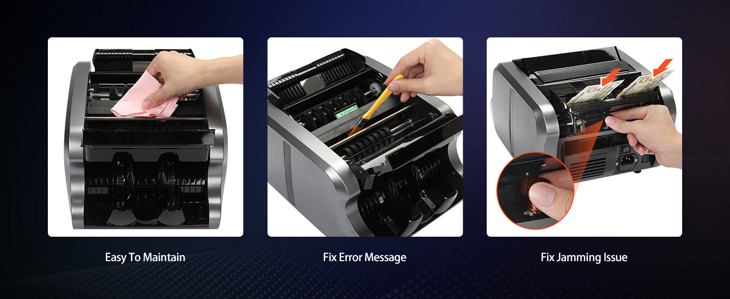 - [Fast and Smooth] The IMC09 cash counter machine has a counting speed of 1000 bills per minute. Upgraded roller processing for old bills provides an advantage for counting creased bills. The currency counter can count up to 200 bills in a single run